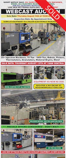 Complete closure featuring mold making equipment, CNC mills, EDM machines, and tooling.